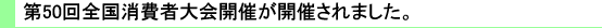 2011年12月3日(土)、東京・虎ノ門の発明会館ホールにおいて、第50回全国消費者大会(主催 第50回全国消費者大会実行委員会、茨城県消費者団体連絡が協賛団体として参加)が開催されました。今年の全国消費者大会は「変えよう日本、つくろう未来〜大震災から見えてきた、エネルギー・食糧・住まい」をテーマに開催されました。大震災発生から半年以上たち、冬を迎える中で、あらためて被災地の復旧と復興を支援するために必要なものは何かを考え合うこと、さらにこれからの日本のエネルギーについて、どのような選択をするべきなのかを、消費者が学び考え合う場となりました。全国各地から約250名が集い、午前10時開場から午後17時の閉会まで、オープニング、そして被災地からの報告、パネルディスカッションI、IIと息を呑む臨場感の下、参加者一人一人の心に深く刻まれる報告とディスカッションが続きました。第50回全国消費者大会は最後に歴史的な「第50回全国消費者大会特別アピール」を満場一致で採択して閉会しました。