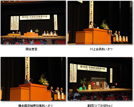 2012年10月5日(金)、茨城県立県民文化センター大ホールにて第38回茨城県消費者大会が開催されました。テーマは「安全・安心いま新たなステージへ」〜放射能汚染に対して消費者に求められること〜とし、県内各地から約1,000名が参加しました。大会では、科学ライターの松永和紀さんと料理研究家の根本悦子さんの2人が後援した他、桜川市の市民劇団「どてかぼちゃ」が悪質商法撃退を題材にした時代劇を披露しました。「放射能汚染に対して消費者に求められること」と題した松永さんの講演では、「放射能に対して、侮ることなく恐れすぎず」という、分かりやすいお話でした。「今伝えたい食の知恵」と題した講演では根本さんがデータを示しながら日本人の食生活と健康の関係を紹介し、味噌汁や梅干し、お茶など昔ながらの日本食が健康に役立つことを栄養学的に説明をされました。