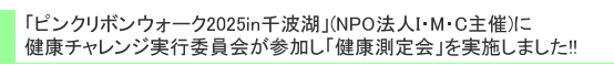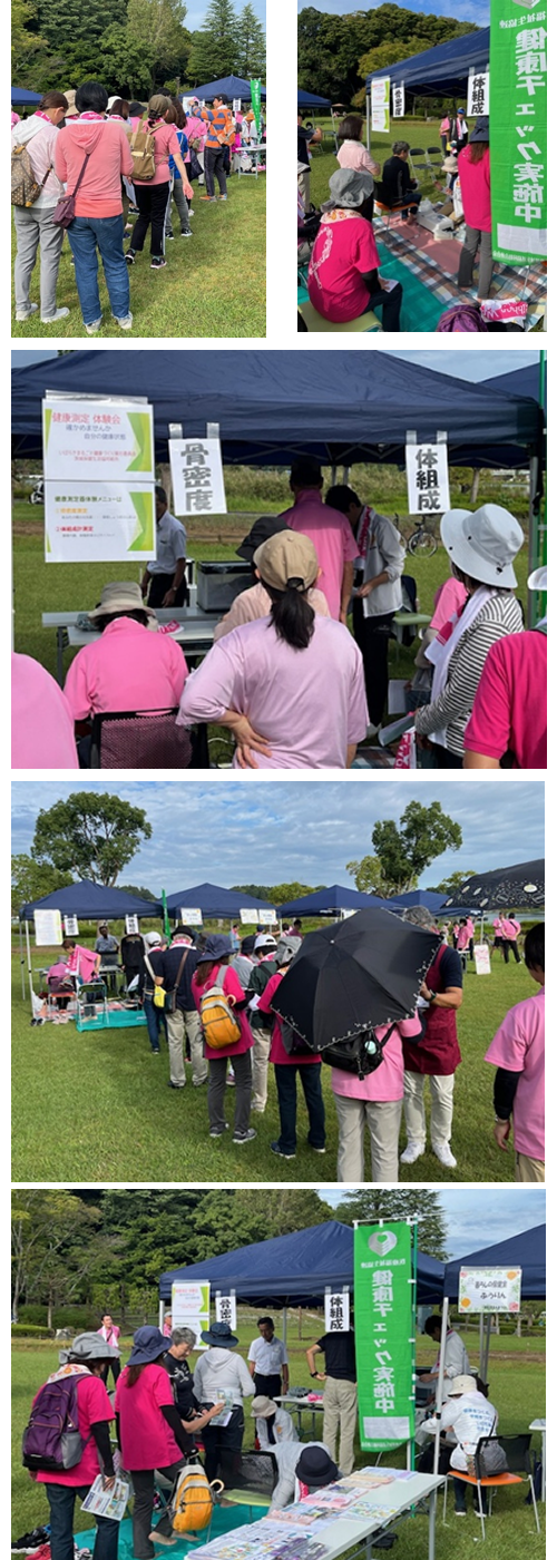 茨城保健生協様の協力をいただき、10月5日(日)、水戸市千波湖湖畔広場で開催されたピンクリボンウォークの野外ブースで、体組成計測定と骨密度測定の機器を使用して健康測定会を実施しました。健康チャレンジ実行委員2名、茨城保健生協4名の計6名で対応をしました。