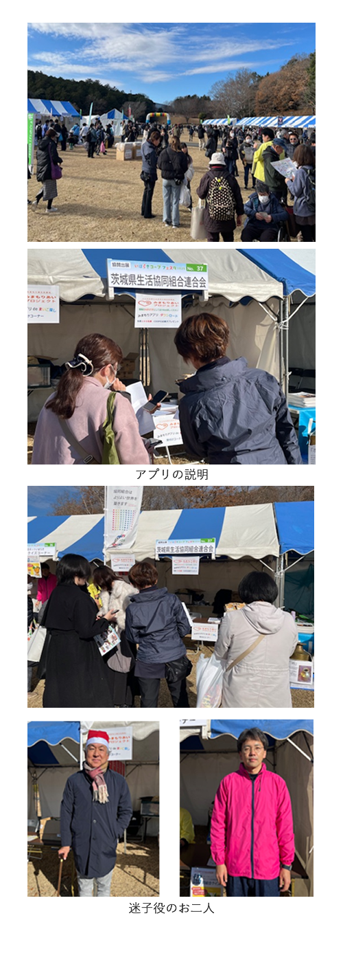12月6日(土)、笠間芸術の森公園を会場とした「いばらきコープフェス2025」に、茨城県生協連が事務局を務めるいばらきみまもりあいプロジェクト(行方不明者捜索アプリ普及)が出店をしました。来場者に捜索アプリを体験してもらう迷子さがしゲームに取り組みました。