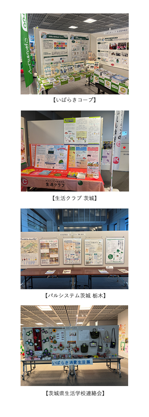 出展は、いばらきコープ生活協同組合、生活協同組合パルシステム茨城栃木、生活クラブ生活協同組合、茨城県生活学校連絡会が参加しました。今回は「環境・平和」や「エシカル消費」等の活動報告がされています。