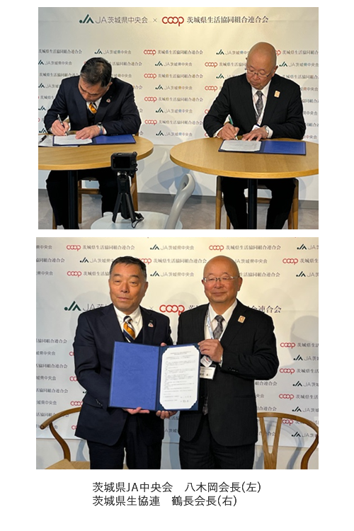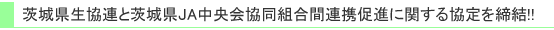 その成果として、さらに協同組合間の連携を促進し、組合員や役職員の交流機会をつくり、安心して暮らせる地域社会づくりを共に目指していくことを目的に、12月26日に県域組織である茨城県生協連と茨城県JA中央会が、協同組合間連携の促進の協定を締結しました。
